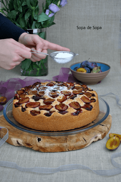 Este pastel es más bien un bizcocho, que al colocarle los gajos de ciruela encima le da jugosidad y humedad.