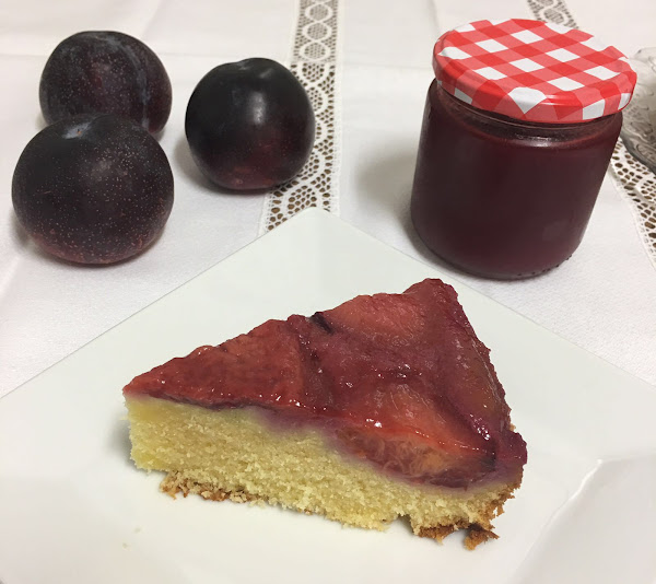 Este pastel de ciruelas es una masa de suave bizcocho, que se hornea con las ciruelas y se pincela con la mermelada de ciruelas rojas casera, lo que le hace absolutamente jugoso y apetecible.