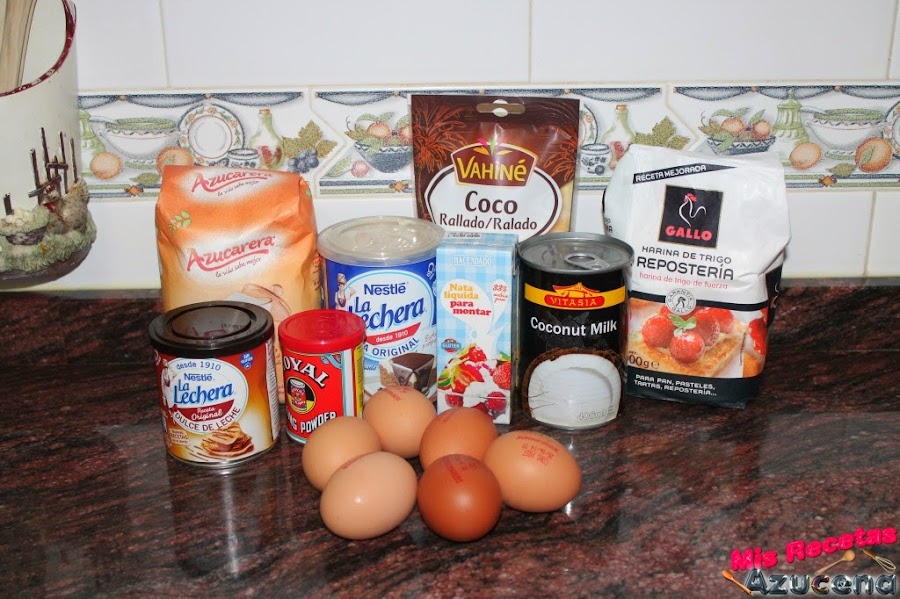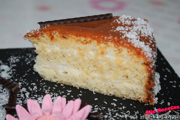 Bueno a lo que vamos, este pastel sobre todo a los que les guste el coco les va a encantar, a mi me gusto muchísimo, desde luego, lo pienso repetir. A la hora de prepararlo complicaciones no tiene ninguna ya que es muy fácil de preparar y os aseguro que fresquito de la nevera esta, uuummm.