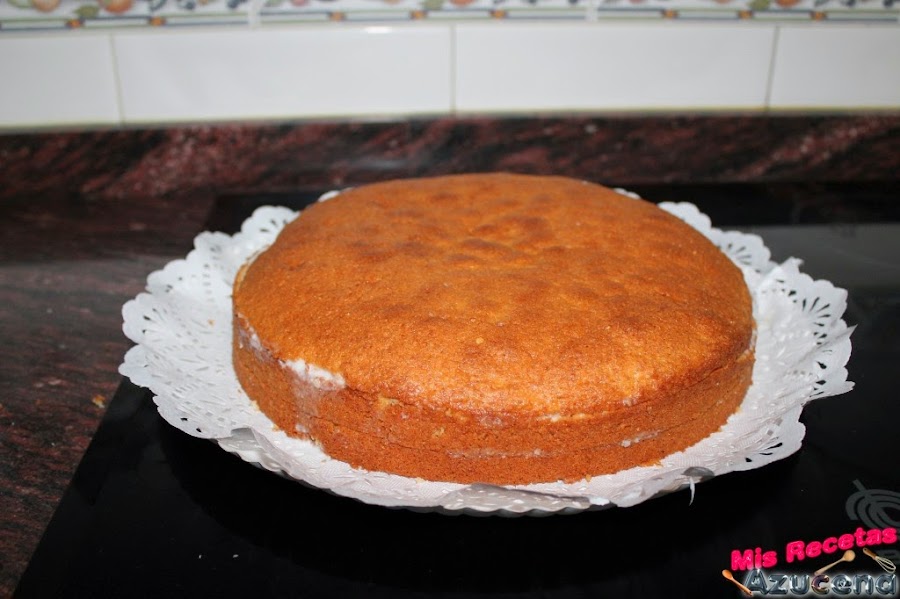 Una vez este frío el bizcocho lo cortaremos en tres partes.