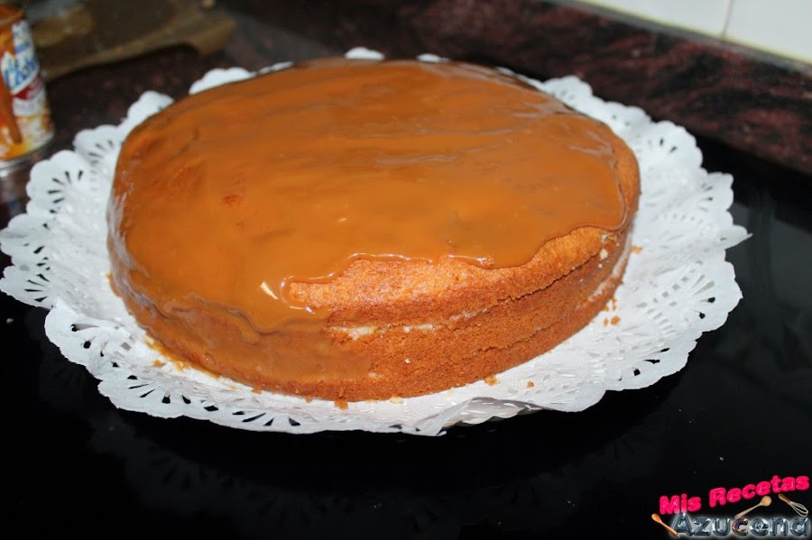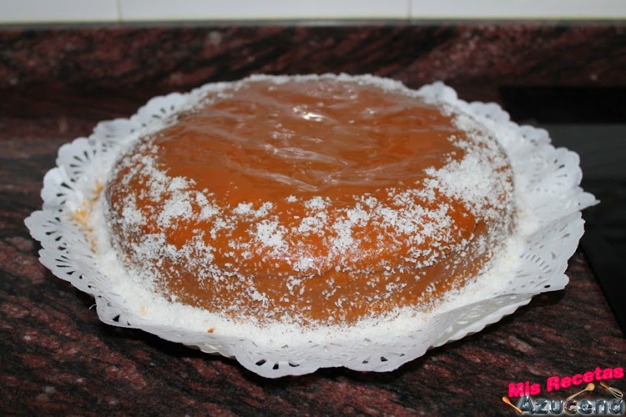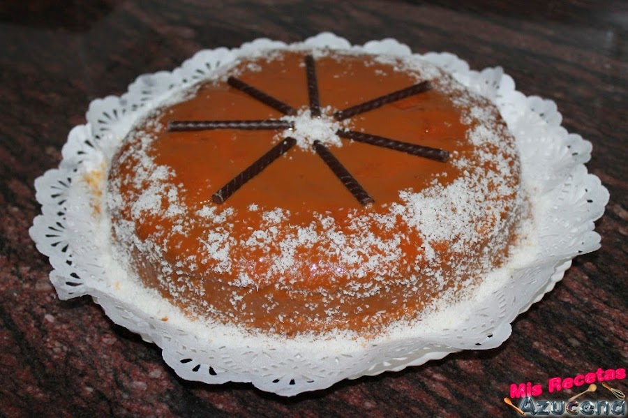 Ahora cogemos el dulce de leche y le pondremos por la parte de arriba y los lados, una vez tengamos todo el dulce de leche repartido le pondremos coco por los lados.