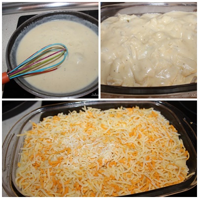 La cubrimos con la bechamel y la espolvoreamos con queso rallado.