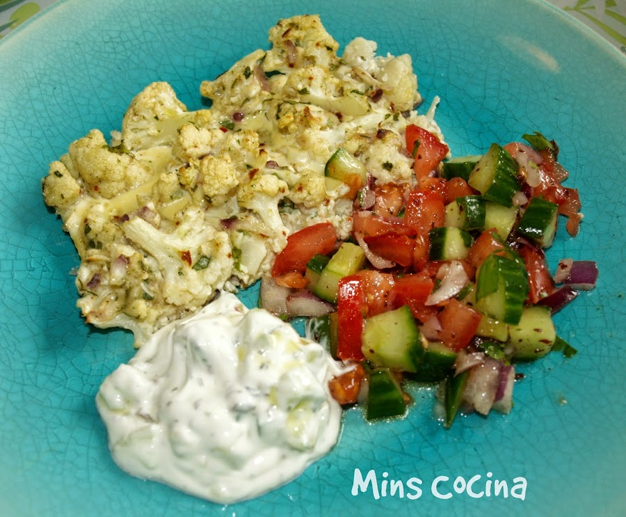 Esta deliciosa receta la encontré en el blog de Ozlem, en el que podéis encontrar numerosas muestras de la cocina turca, tanto tradicionales como nuevas e innovadoras. Como ésta, basada en una receta tradicional de tortillitas de calabacín, Mucver, cambiando a coliflor y horneando en lugar de friendo. Queda así una especie de pastel o tortilla grande, con mucha coliflor y poca masa, aromático y sabroso. Lo acompañé con Cacik, la salsa de yogur, pepino y menta, y Çoban SalatasI, la ensalada del pastor. Nos encantó. Un plato diferente, original y muy rico que repetiremos seguro.