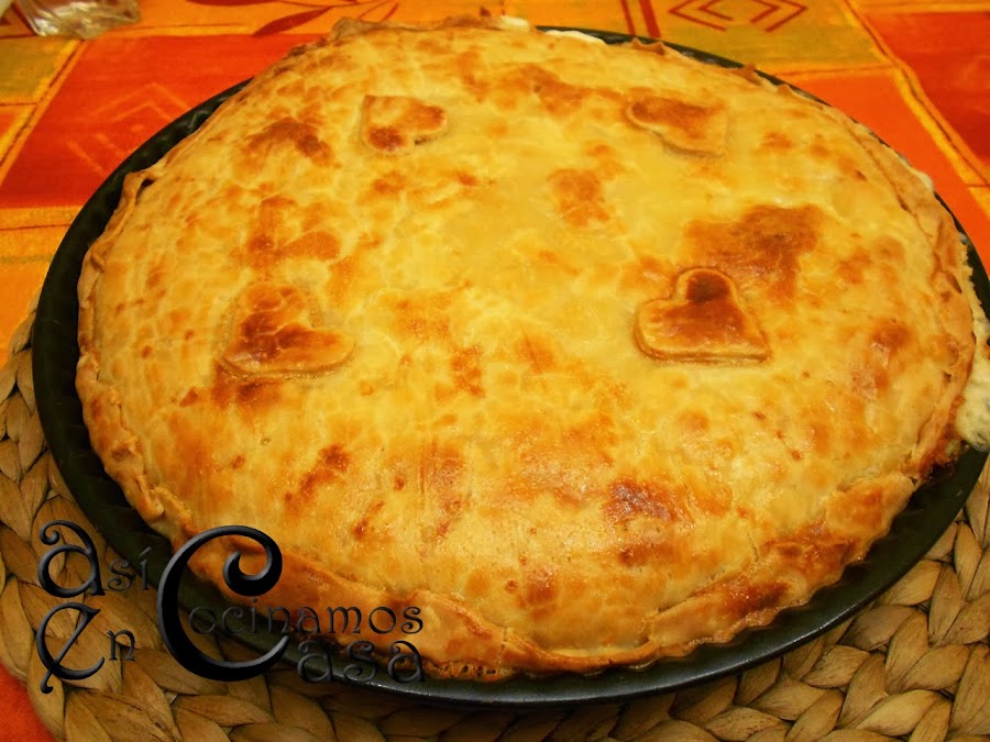 Batimos el huevo y con ayuda de un pincel pintamos toda la superficie. La pinchamos con un tenedor para que no suba. La metemos al horno hasta que se dore bien por arriba y listo!