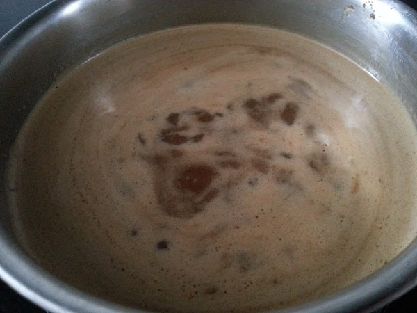 9. - Y mientras está en el horno haremos la salsa de toffee, poniendo en un cazo la nata (crema de leche) con el azúcar y la mantequilla y lo ponemos al fuego removiendo hasta que empiece a hervir.