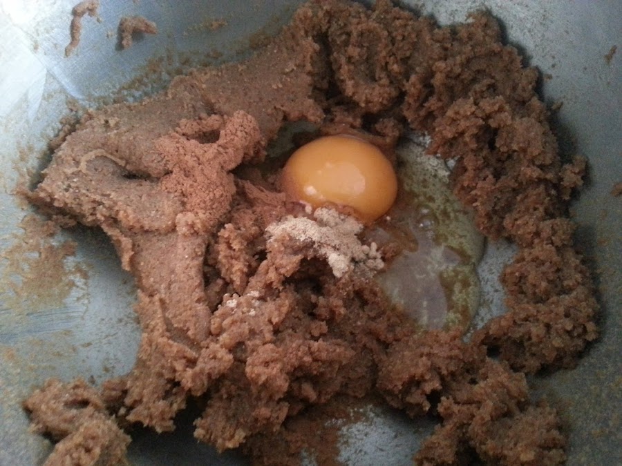 3. - Le añadimos la canela y el gengibre y un huevo y volvemos a batir.
