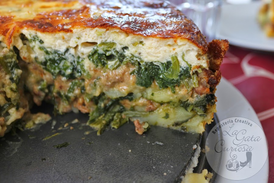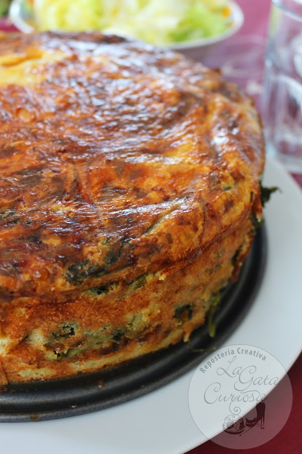 Este pastel de queda muy rico, si os gustan las espinacas claro, a mi me encantan y por eso las uso mucho, me gustan frescas, las congeladas la verdad es que no me gustan nada de nada. Las patatas las puse cocidas y el pastel ganaría mucho poniéndolas fritas, también ganaría calorías además de necesitar más tiempo para hacerlo.