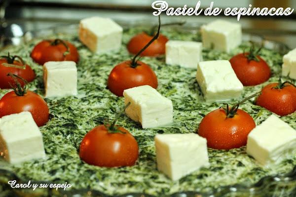 Sacar del horno y encender el gratinador. Mientras disponer por encima del pastel el queso feta en dados y los tomates cherry, llevar al horno y gratinar unos 5 minutos