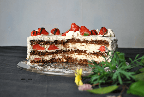 Termina de cubrir con la última base de bizcocho y meter en la nevera unas 2 horas.