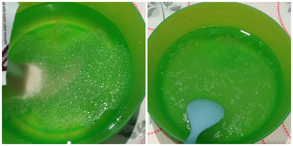 ☺Recuerda retirar la espuma que se forma cuando mezclas el preparado. Si no lo haces, quedará manchada la capa formada.