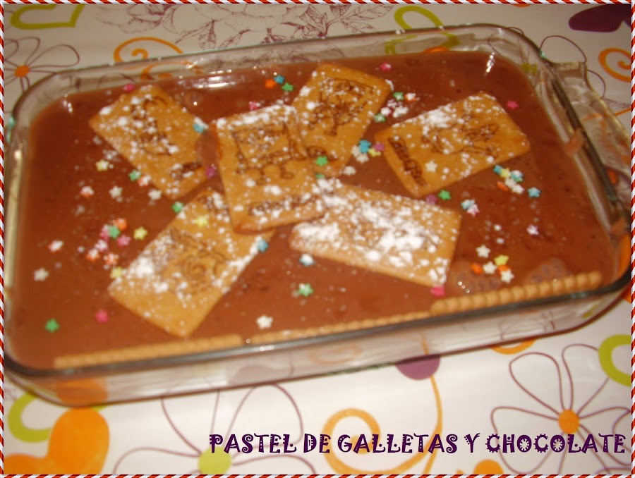 En una fuente de cristal ponemos una capa de galletas, chocolate, galletas, chocolate, así las capas que queramos. Adornamos como queramos y enfriamos en la nevera.