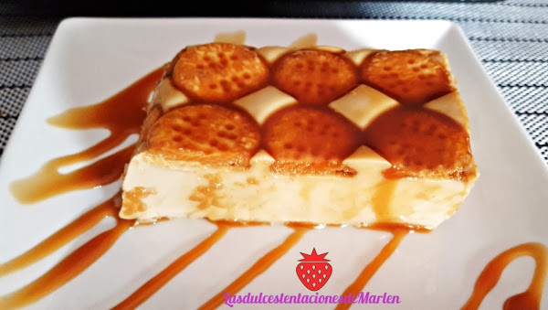 Ponemos en el fondo del molde y sobre las paredes bien estendido el topping de caramelo.