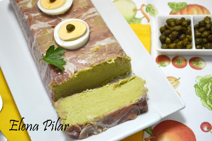 Vertemos dentro de un molde rectangular forrado con las lonchas de jamón serrano. Reservamos en la nevera un mínimo de 6 horas.