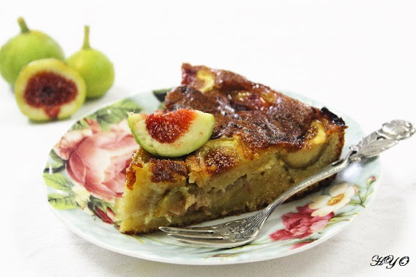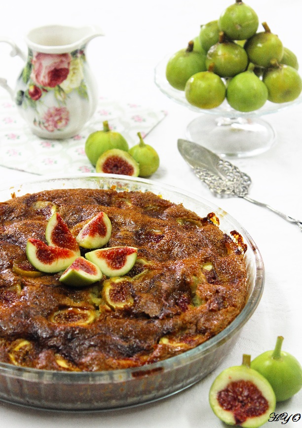 5. Untamos un molde tipo quiche con mantequilla y lo espolvoreamos con un poco de harina. Vertemos la masa del pastel y encima vamos colocando las mitades de higos hasta llenar la superficie.