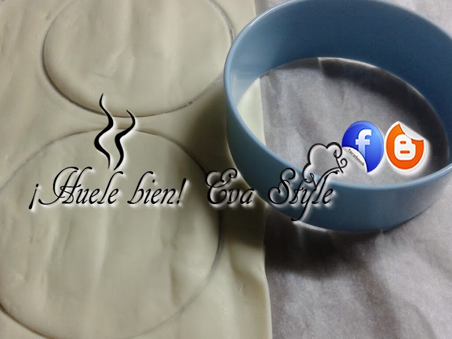 1.- Estiramos la masa, con un rodillo sobre una superficie enharinada. Cortamos con un molde de aro, tres círculos.