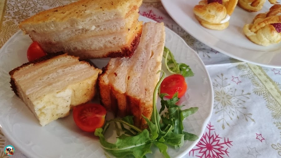 En la misma linea también tienes; pastel de pan de molde y pollo y pastel de pan de molde con atún.