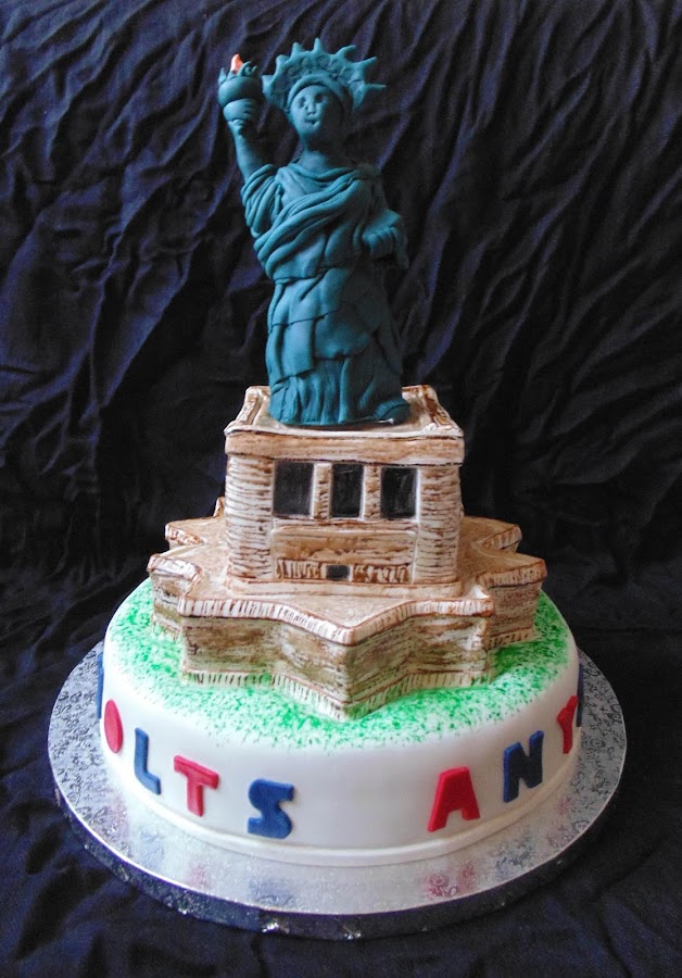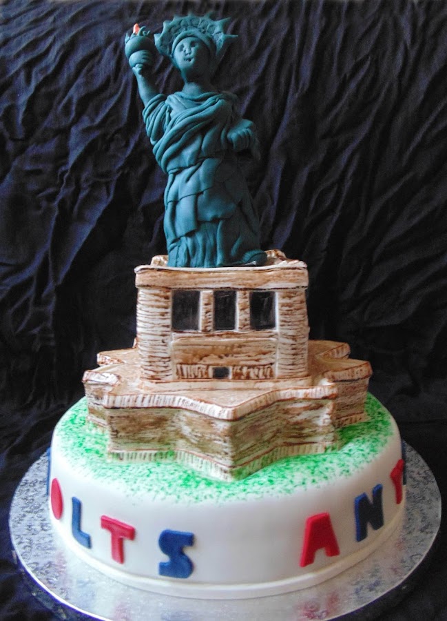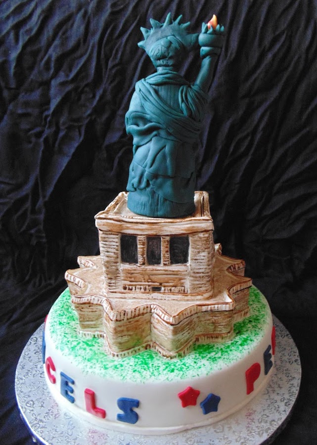 Sí, ya se que no es 4 de julio, pero festejamos el cumpleaños de una persona que tiene muuuuuchas ganas de hacer un viaje a New York y hacer muchas fotos de la estatua de la libertad. Así que preparamos un pastel de "Liberty".