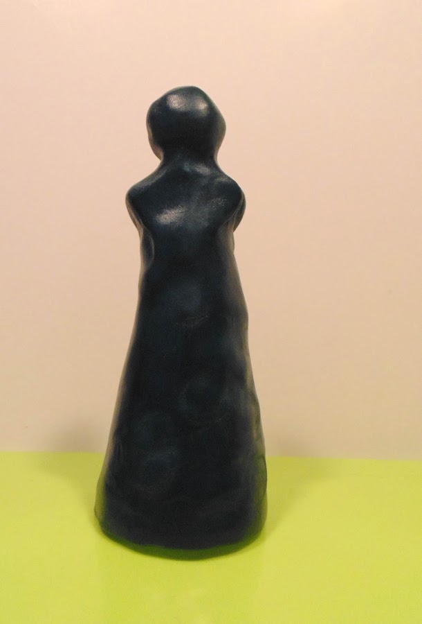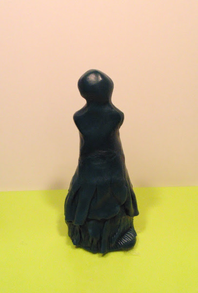 Lo ideal es hacerla con unos días de antelación, para que el fondant se seque y no la deformemos al manipularla para colocarla coronando nuestro pastel. Aquí tenéis también una foto de como queda por detrás.