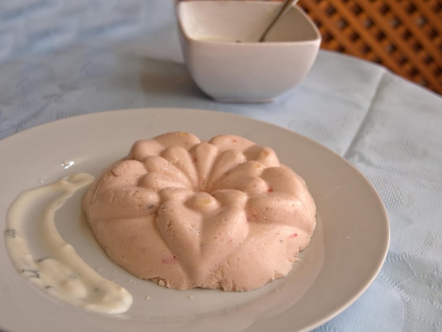 Calentamos la leche en el microondas y disolvemos las hojas de gelatina, mezclamos con el queso, los langostinos y el surimi, salpimentamos y dejamos en la nevera hasta como mínimo 4 horas hasta que este cuajado.