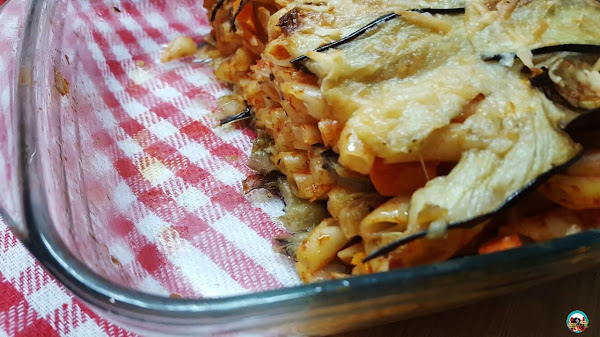 No lleva ni carne ni bechamel, un plato de macarrones pluma con salsa de tomate y verduras. Estamos en temporada de berenjenas y una buena manera de aprovecharlas es cocinarlas con una plato que siempre gusta como los macarrones, así de esta forma enseñaras a tus hijos a disfrutar de todo el sabor de las verduras y de sus ricas propiedades.
