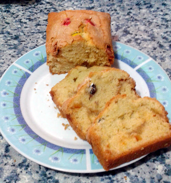 Preparar un molde engrasado, echar la mitad de la masa, extienda la mermelada y eche la otra midad de la masa para cubirla. Espolvorear con azúcar y poner los lacasitos.