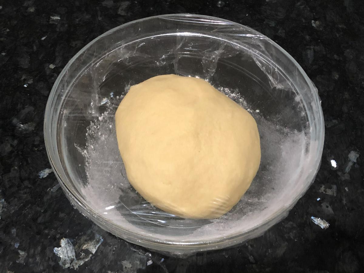 3. Pasado este tiempo, estiramos la masa sobre nuestra superficie de trabajo ligeramente enharinada. Si se nos pega en el rodillo, podemos enharinarlo un poco.