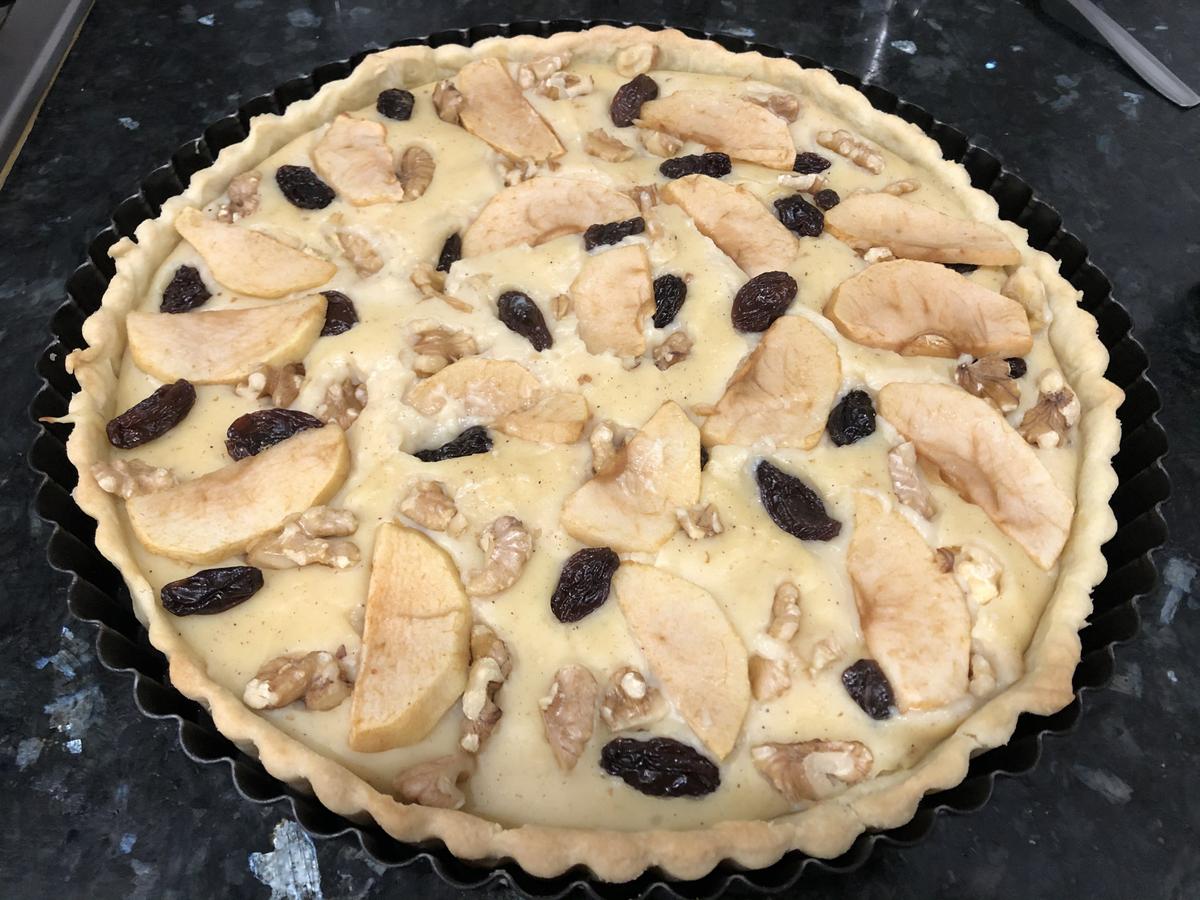 Hola! Os traemos hoy este super pastel de manzana, nueces y pasas. Ya os adelantemos que, si lo preparáis, vais a querer repetir con otro trocito, seguro. Y más si os gustan este tipo de elaboraciones con base de masa quebrada, fruta y frutos secos. El relleno especiado con canela y vainilla, combinado con la manzana, es una autentica delicia. Dejo de poneros los dientes largos, seguid leyendo y descubrir cómo podéis hacerlo en casa.