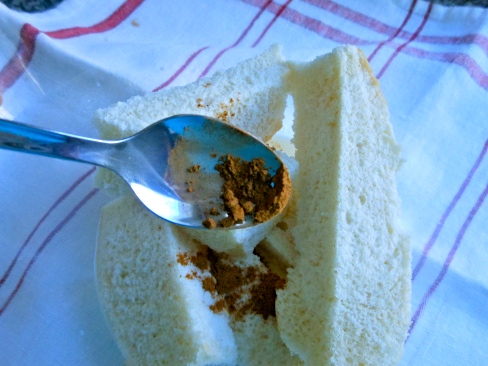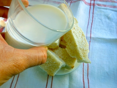 Tras esto introduce las rebanadas de pan en un bol amplio y añade la media cucharadita de canela, el vaso de leche, las pasas previamente escurridas y los trocitos de manzana cocidas con todo el líquido que hayan soltado.
