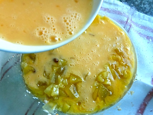Cuando los huevos estén bien batidos añádelos al bol con todo lo anterior y mézclalo todo muy bien usando una paleta de madera o de silicona.