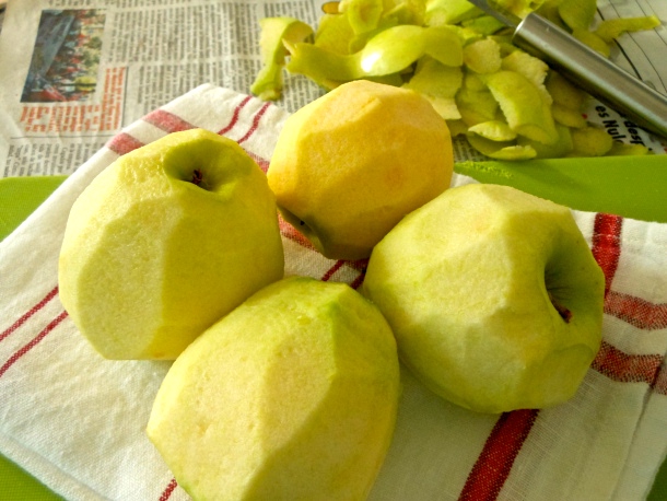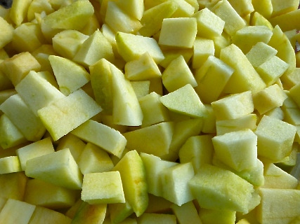 Tras esto descorazona las manzanas, pélalas y córtalas en dados pequeños.