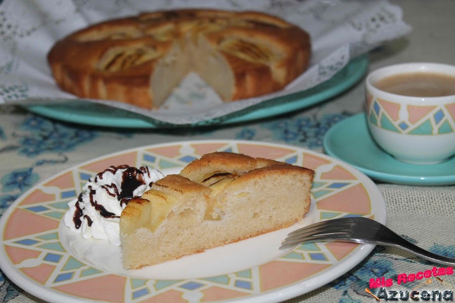 Venga vamos con el postre, aunque venga un día tarde os aseguro que os lo vais a terminar de todas formas. Este pastel es muy sencillo y viene acompañado de manzana que es una fruta que en dulces queda genial, a mí me encantan todos los postres con manzana.