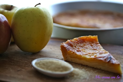 En una conocida horchatería de Valencia preparan el mejor pastel de manzana que jamas he probado.Por supuesto, no tengo la receta pero he estado buscando y he encontrado ésta, que creo que es la más parecida. Se la he copiado una vez más a Mª Dolores (que debe de estar un poquito harta de ver tantas veces su nombre en este blog...) y que a su vez la sacó de otro blog.