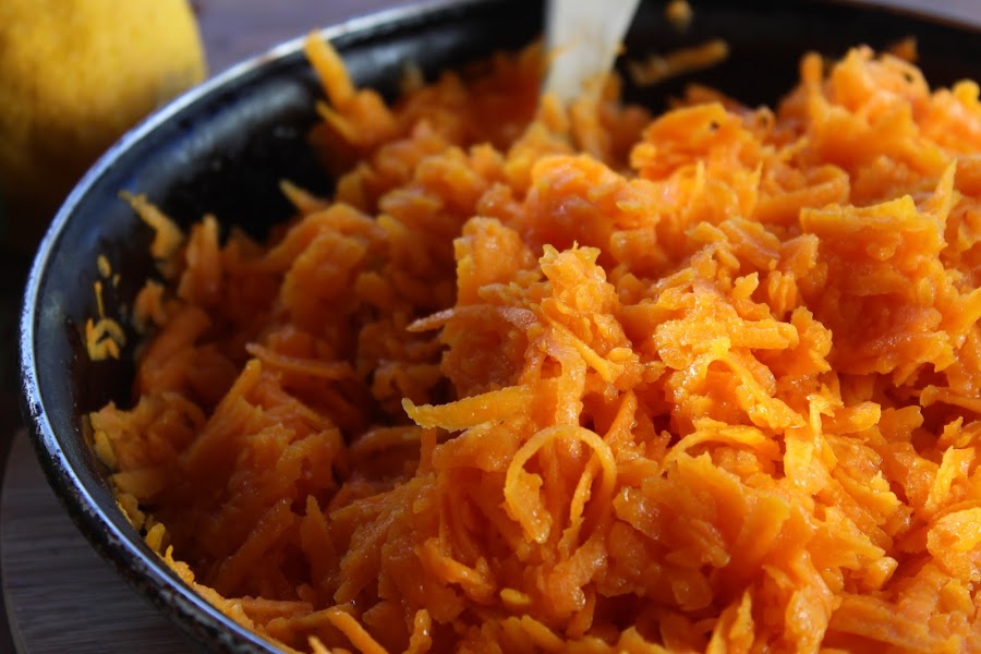 4- En una sartén poner un poco de la mantequilla fundida y pochar la calabaza rallada con el azúcar y la canela.