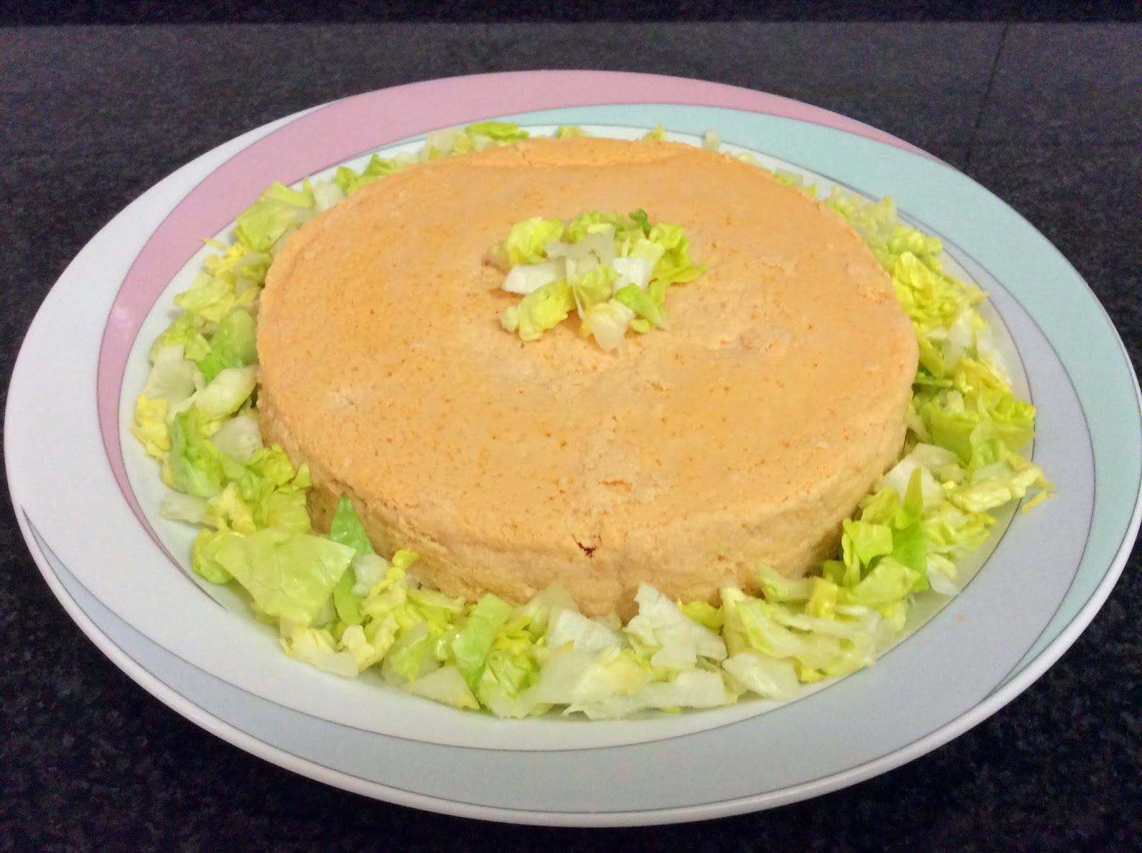 c) Vertemos la mezcla en la softiera ciega y esta la introducimos en la olla donde ya tenemos el agua de haber cocido la merluza, tapamos y programamos nuestro audiotherm 8 minutos en función turbo. cuando la franja roja llegue a la función "turbo" bajamos el fuego al mínimo y dejamos que pasen los 8 minutos para apagar el fuego y dejar que despresurice la olla.d) Cuando podamos abrir la tapadera, sacamos la softiera y damos la vuelta al pastel con un plato, podemos introducir la lengua de silicona por las paredes para despegar bien el pastel. conviene sacar el pastel cuando aun este templado.
