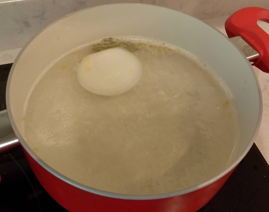 1. Ponemos a hervir agua en una olla junto con la mitad de la cebolla, la hojita de laurel, un chorrito de aceite de oliva y un poquito de sal. Dejamos que hierva el agua un rato con la cebolla para que le de tiempo a soltar su sabor y después añadimos los filetes de pescado que solo necesitarán unos minutos para estar listos. Estarán cocidos en cuanto los veas blancos (unos 5 minutos aprox). Una vez cocido el pescado lo escurriremos y se pasará a un plato para dejar que se temple.