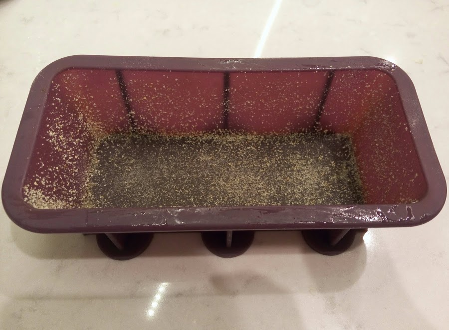 4. Como vamos a cocinar este pastel en el microondas, utilizaremos un molde de silicona o cristal. Echaremos en él un poco de aceite y con la ayuda de los dedos, un papel de cocina o una brocha engrasaremos las paredes del molde y echaremos un poco de pan rallado en las paredes para que no se pegue el pudin. Los moldes de silicona no es necesario engrasarlos, excepto la primera vez que se usan.
