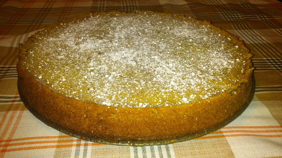 Ahora cogemos un molde (yo lo he hecho con uno desmoldable), lo untamos con aceite o mantequilla y vertemos la composición anterior y lo llevamos al horno que ya tendremos previamente precalentado a 180º durante aprox. 40-50 min. según horno, dejamos enfriar, espolvoreamos con azúcar glas y ya tenemos un magnífico pastel de una fruta del tiempo que es muy saludable, espero que os animéis a hacerla y que os guste, saludos