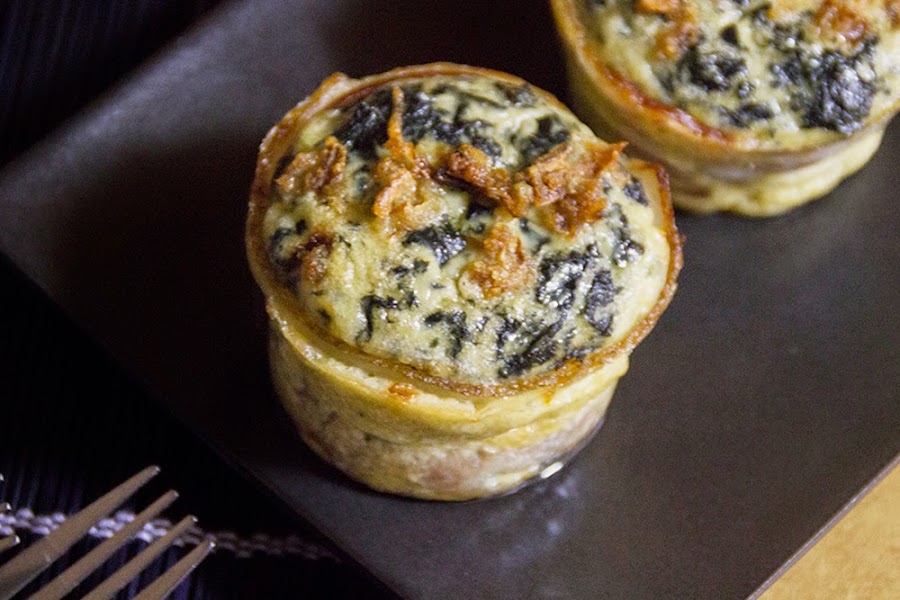 Metemos en el horno ya caliente durante al menos 25 minutos o más dependiendo del tamaño de nuestros moldes. Dejarlos hasta que el huevo esté bien cuajado, se puede comprobar con un palillo. Los últimos dos minutos añadimos el gratinador para que el bacon de encima quede bien crujiente.