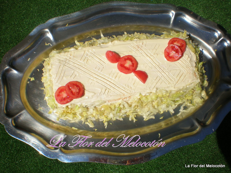 Desmoldamos, untamos con la mayonesa y lo adornamos a nuestro gusto.