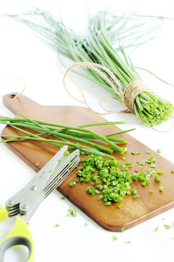 Una vez emplatado, decorar con cebollino picado y acompañar con la salsa que mas os guste.