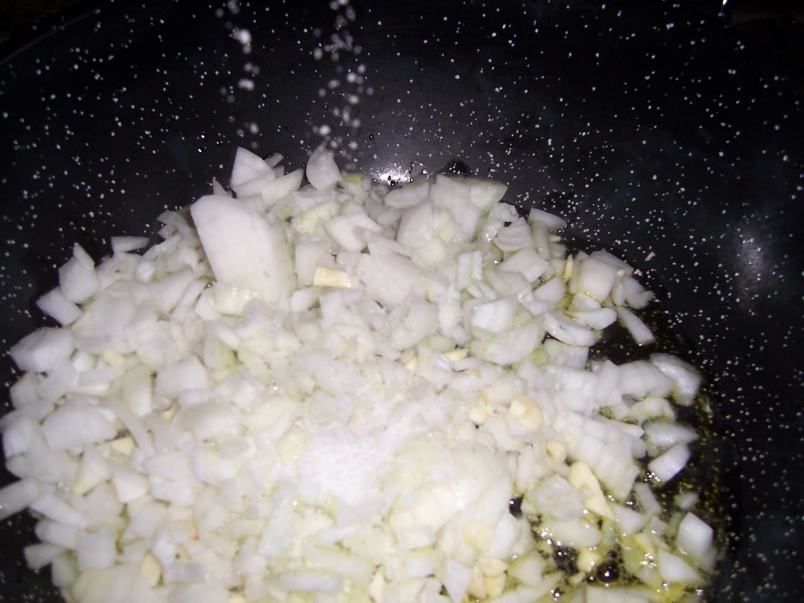 Picamos la cebolla y la ponemos a pochar con un buen chorrito de aceite de oliva y sal hasta que cambie de color, unos 10 minutos, si es necesario refrescar con agua.