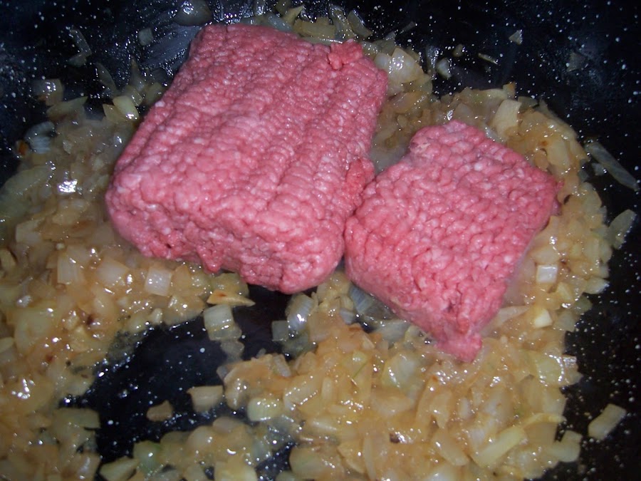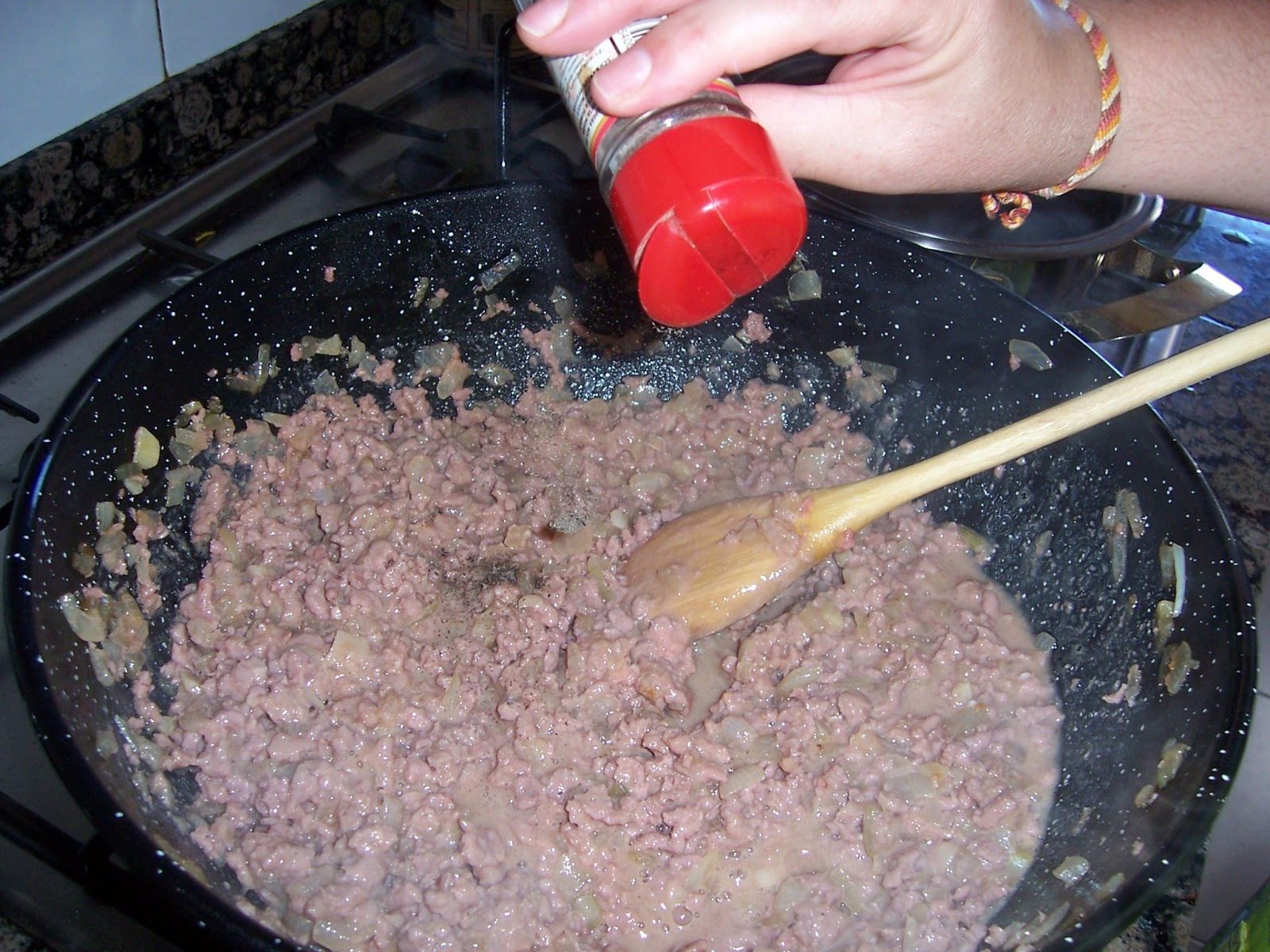 Añadimos la carne picada y la vamos desmigando mientras que se va haciendo.