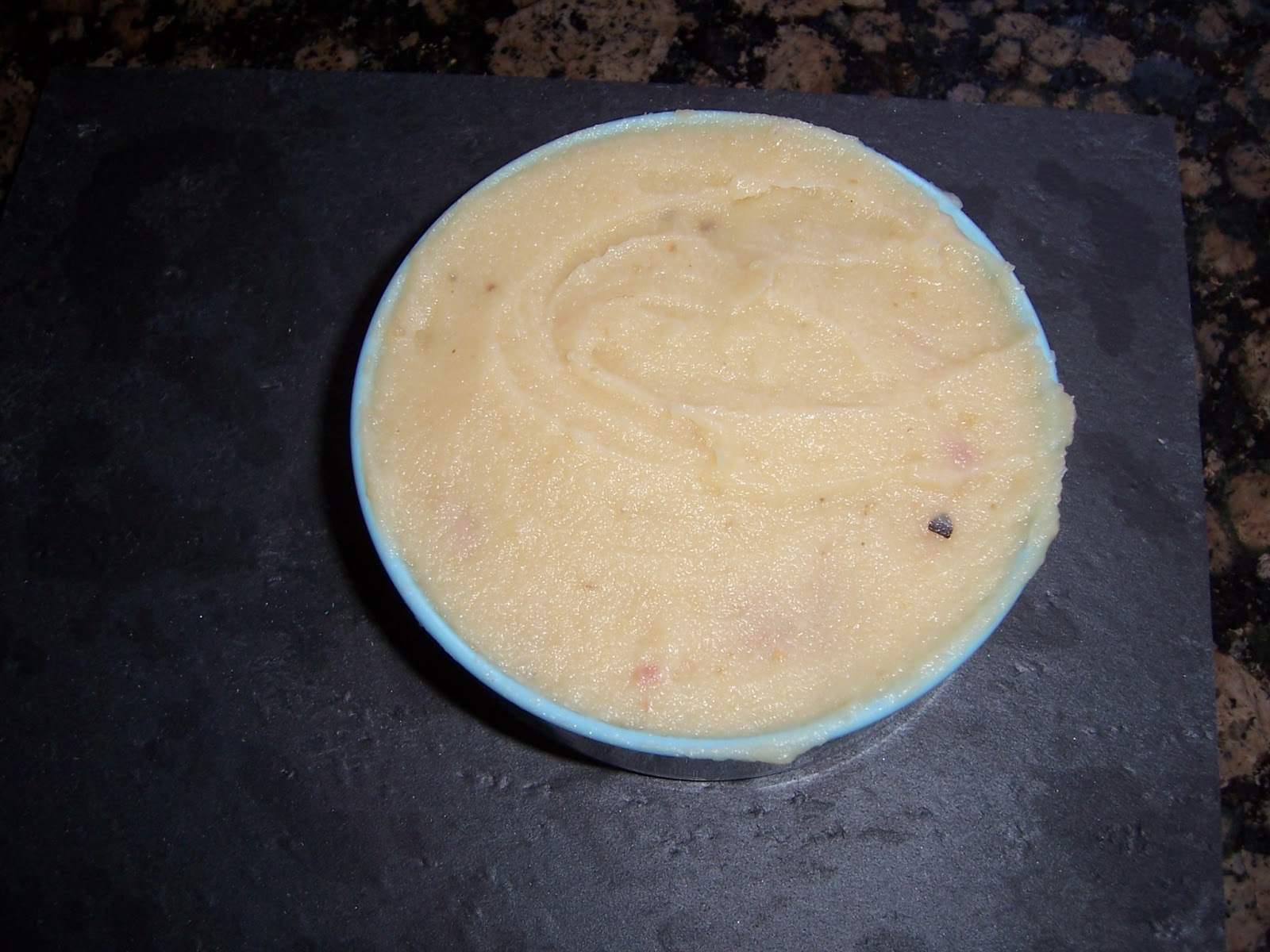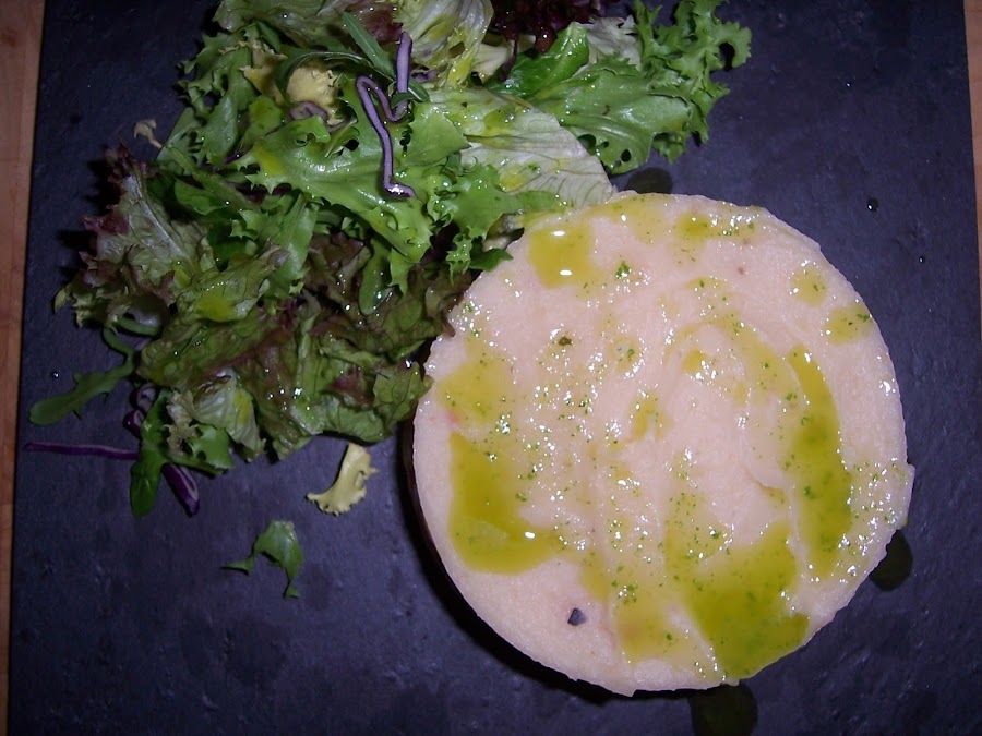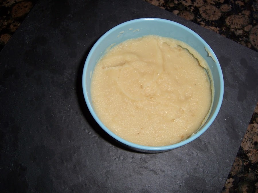 Abrimos el bote de puré de patatas, lo volcamos en un plato grande, lo calentamos un par de minutos en el microondas y listos para montar el plato.