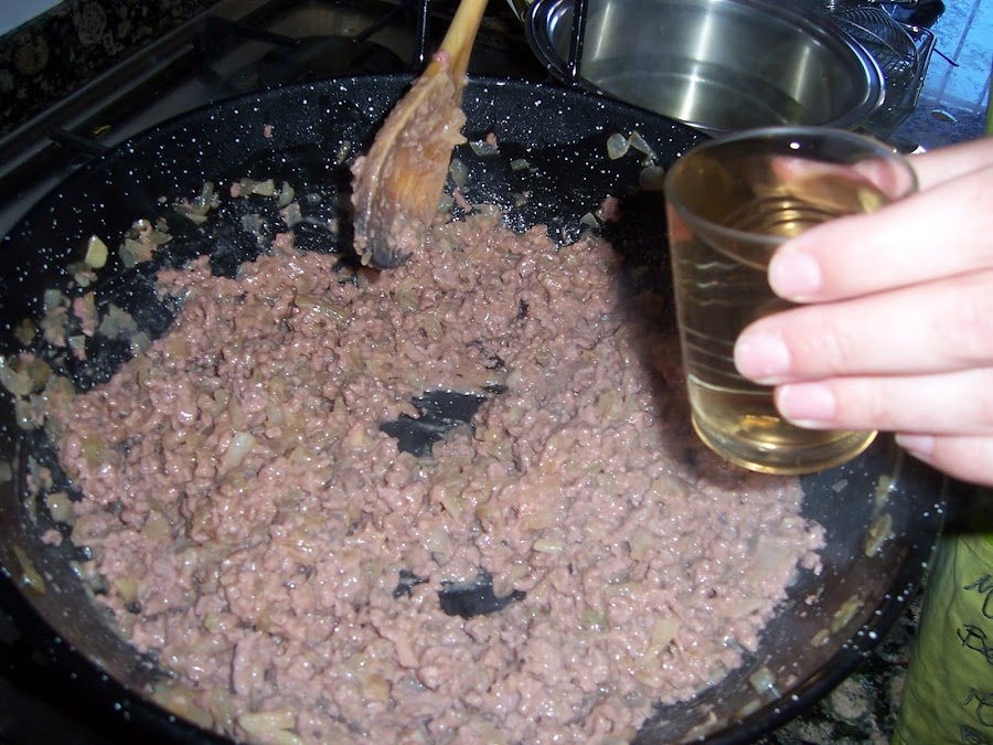 Incorporamos el vino blanco, la pimienta y dejamos evaporar prácticamente todo el vino, rectificamos de sal y apartamos.