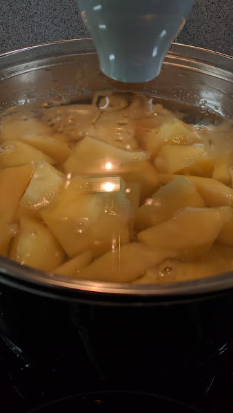 Pon a cocer las patatas en trozos en agua con un poco de sal