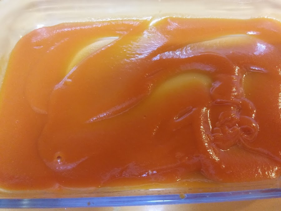 En el fondo de un recipiente apto para horno vamos a poner el tomate frito.