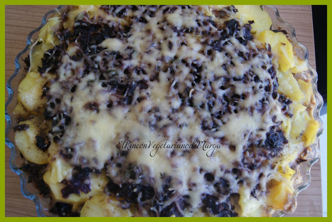En un molde de cristal, ponemos una capa gruesa de patatas, una capa de la col con la nata (crema de leche), un poco de queso y otra capa de patata, así sucesivamente hasta llegar arriba del molde. Por último añadimos una buena cantidad de queso mozzarella por encima y lo metemos en el horno unos 10 minutos.