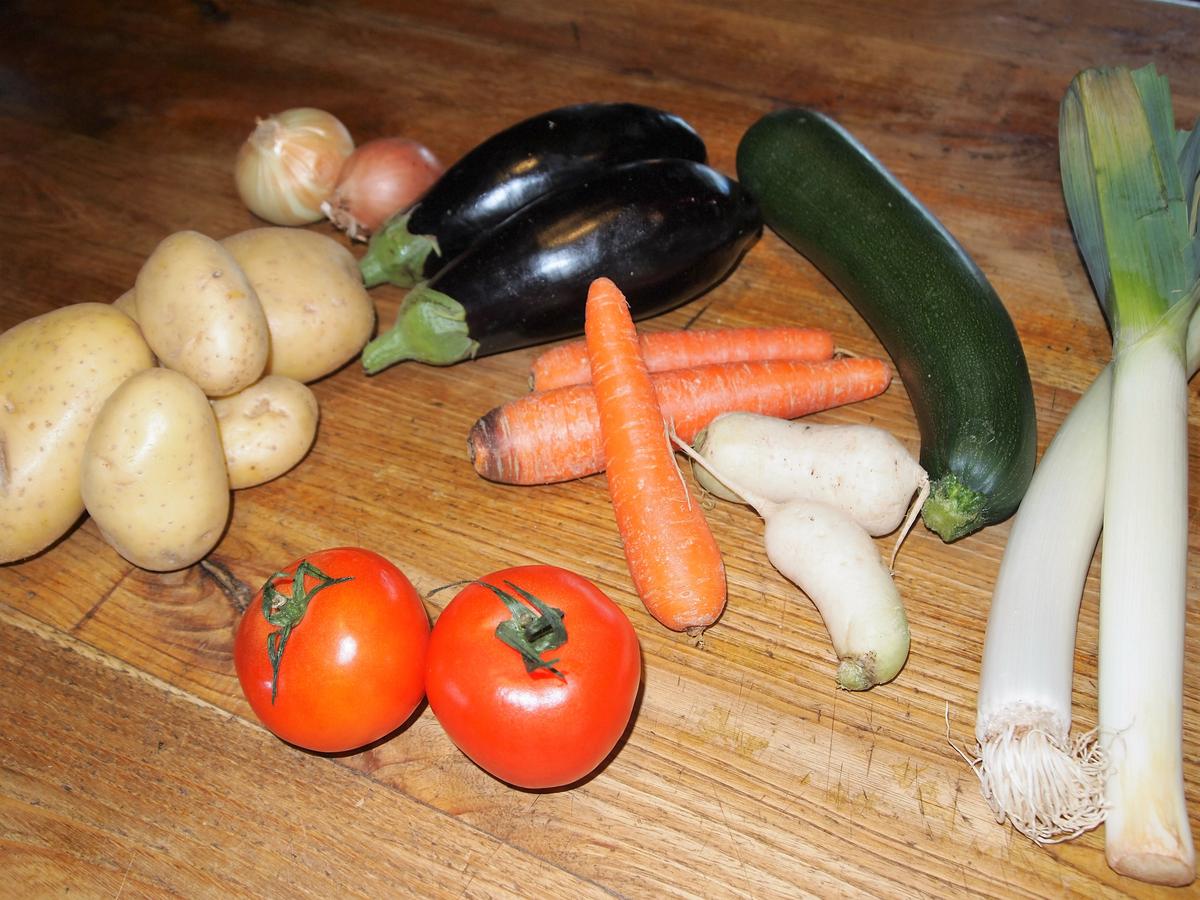 Ingredientes: (estos son los que he usado en esta ocasión, pero se puede hacer con aquellas verduras solitarias y desparejas que a veces habitan la nevera)