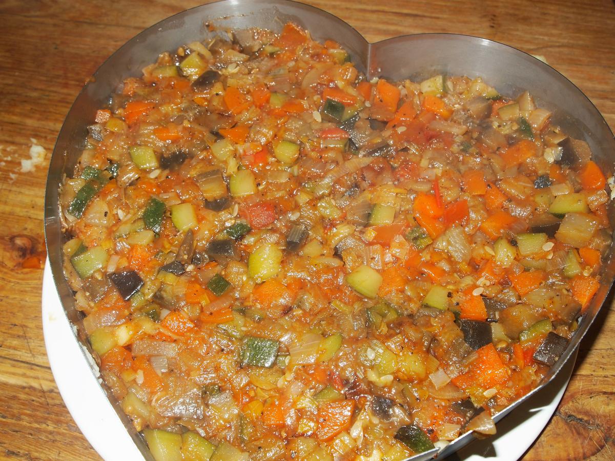 En esta ocasión, mi pastel de patata y verduras tiene forma de corazón. Soy adicta a los cachivaches y chismes de cocina, y tenía desde hace tiempo este molde sin base para hacer tartas con forma de corazón y me ha parecido que las verduritas se merecían un poquito de amor.