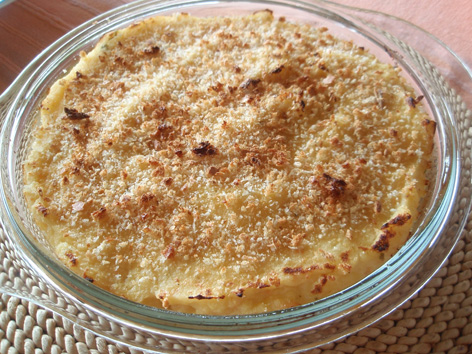 Si en vez de en forma de pastel, queremos presentarlo como las tradicionales patatas duquesa, eliminamos el pan rallado, metemos la mezcla en una manga pastelera y ponemos montoncitos encima de un papel de hornear colocado en una bandeja del horno.